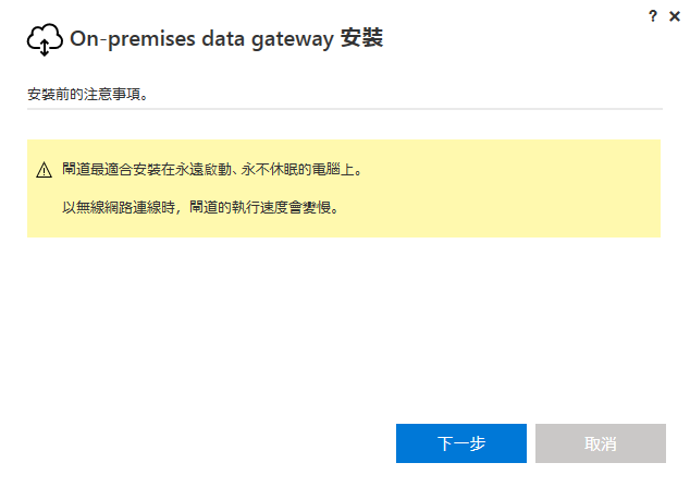 - 一般而言,若選擇內部部署閘道器,此資料伺服器主機應為永不休眠的電腦。